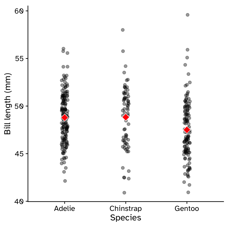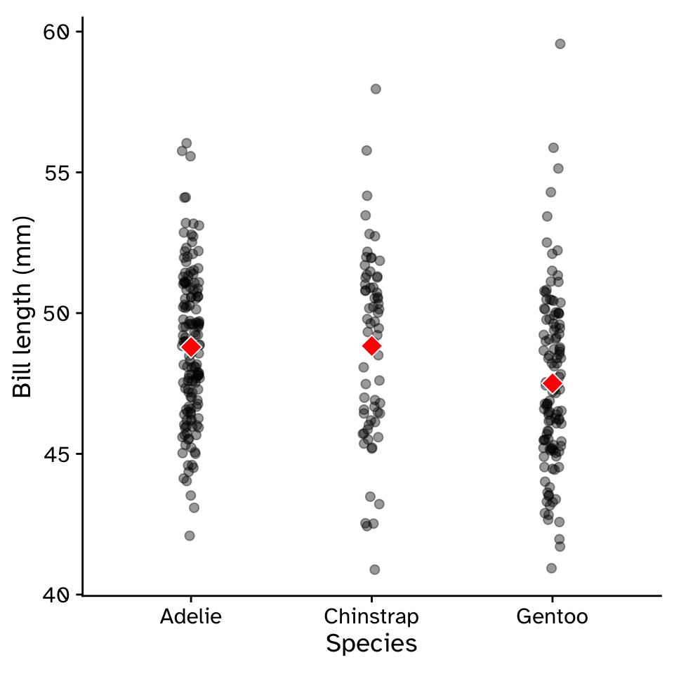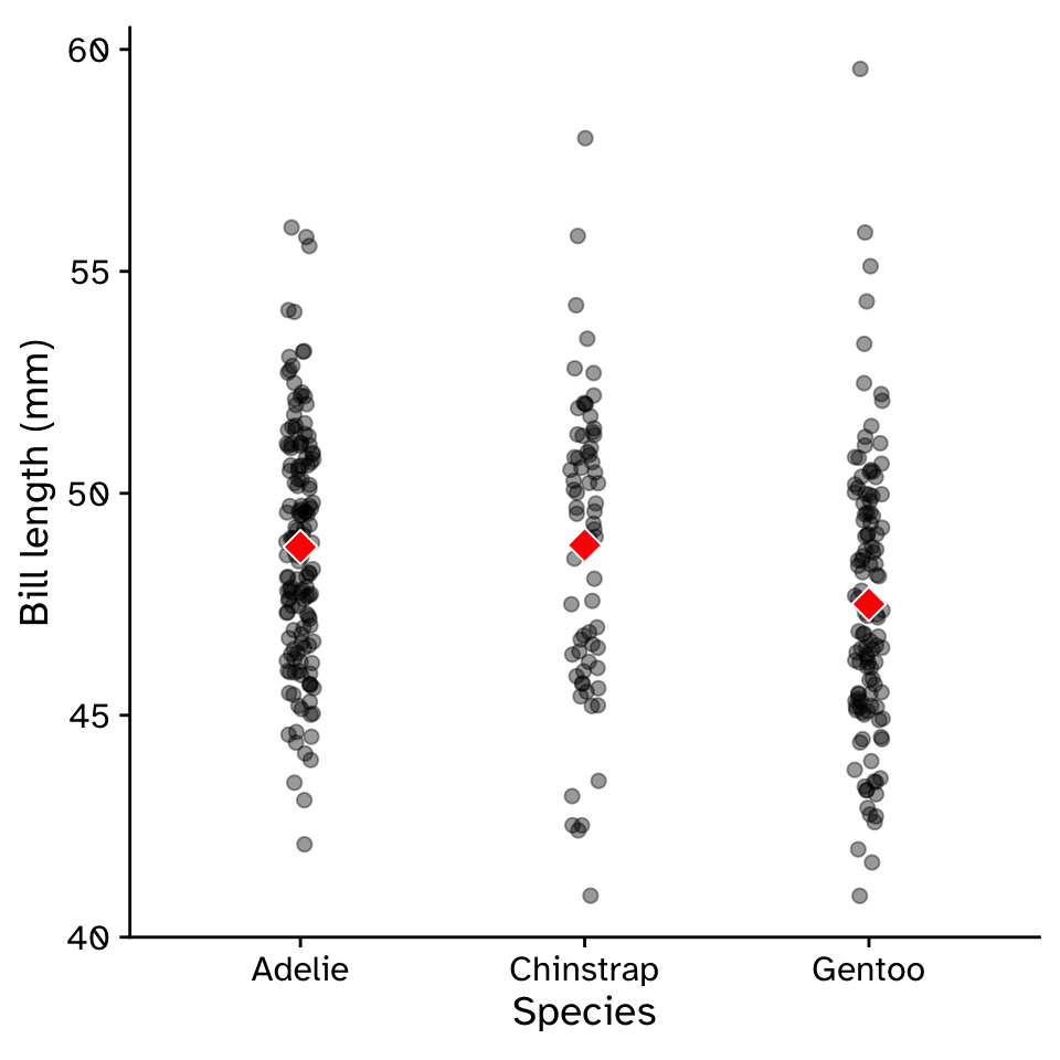 F = \frac{\text{Mean variance between-group}}{\text{Mean variance within-group}}