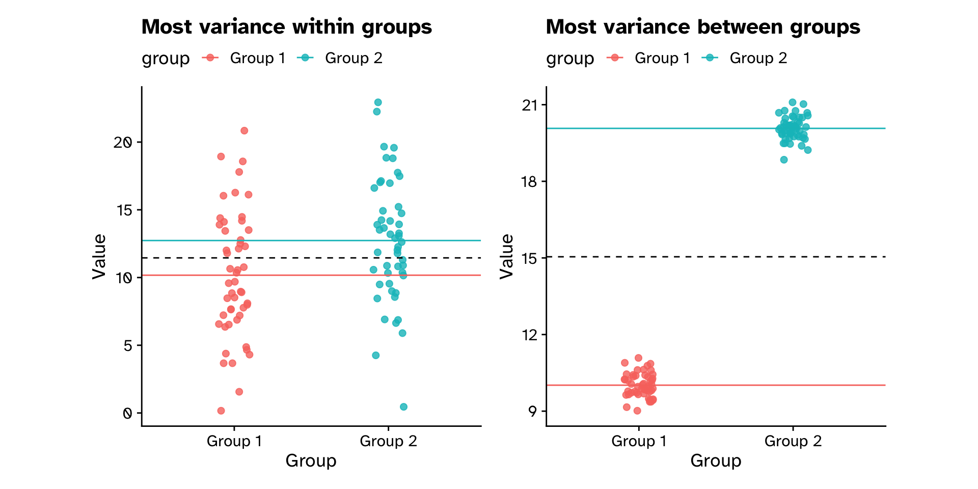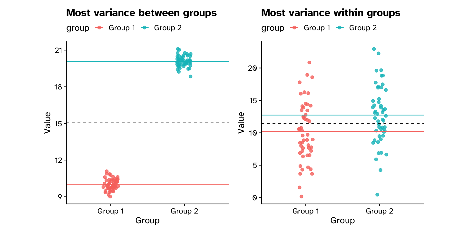 F = \frac{\text{Between-group variance}}{\text{Within-group variance}}
