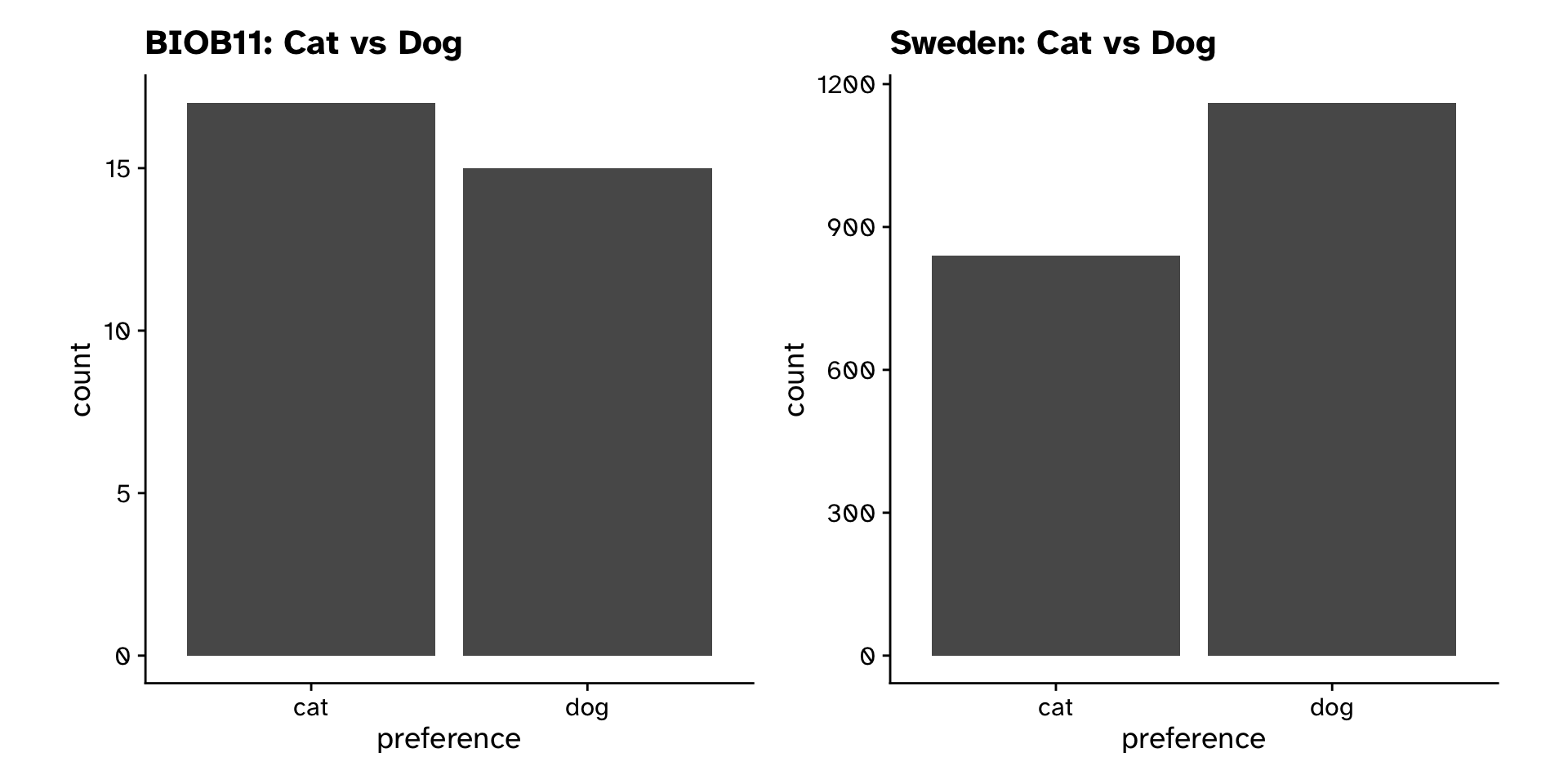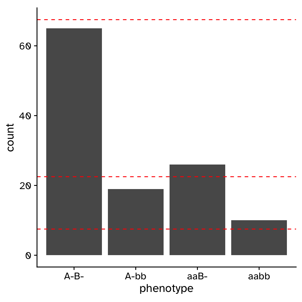 \[ \chi^2 = \sum \frac{(Observed_i - Expected_i)^2}{Expected_i} \]