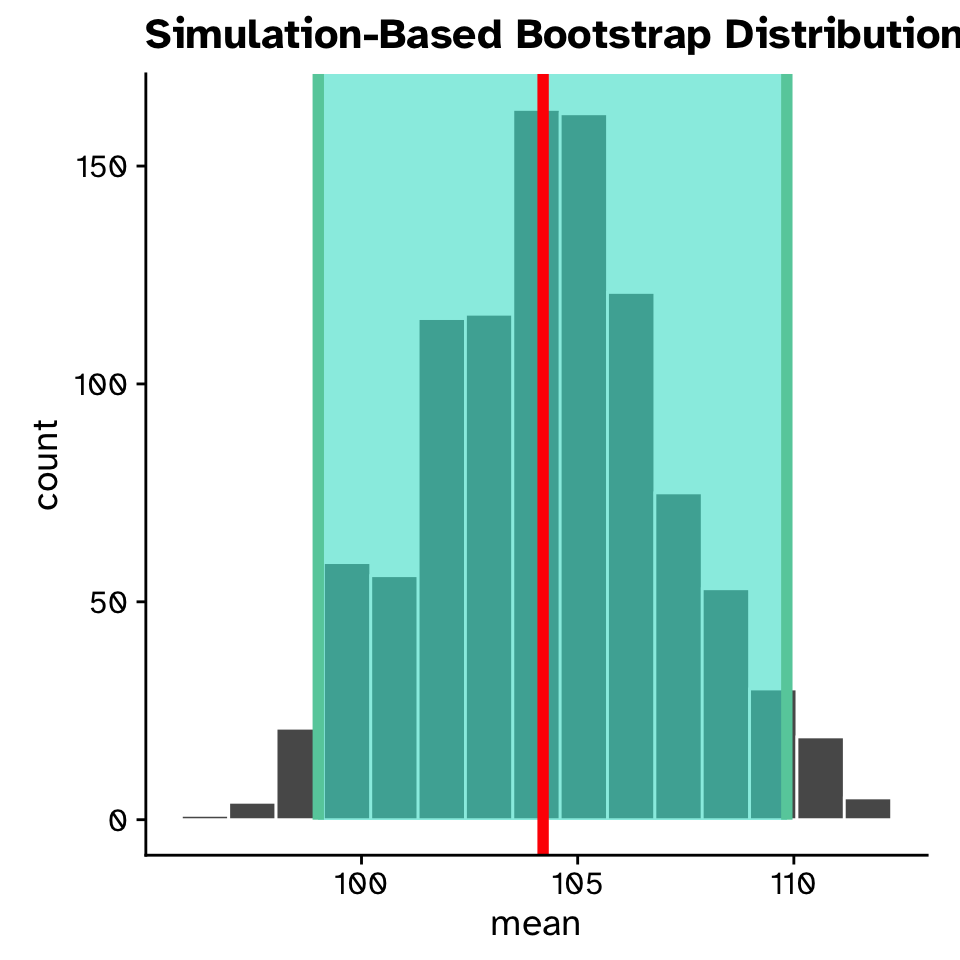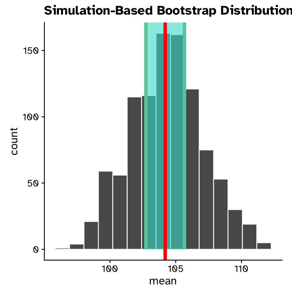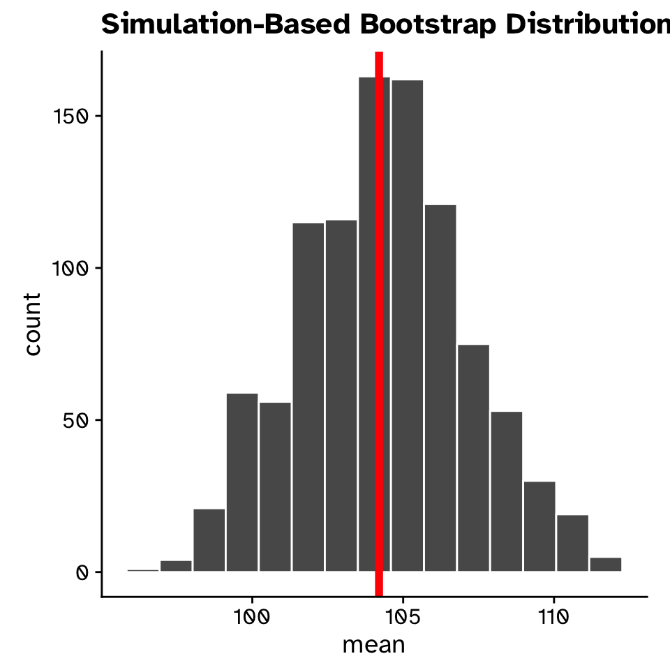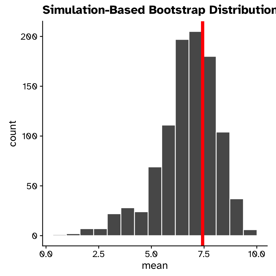 In pairs, resample with replacement (n=6) values from my sample to get a new “bootstrap sample”, then calculate the mean.